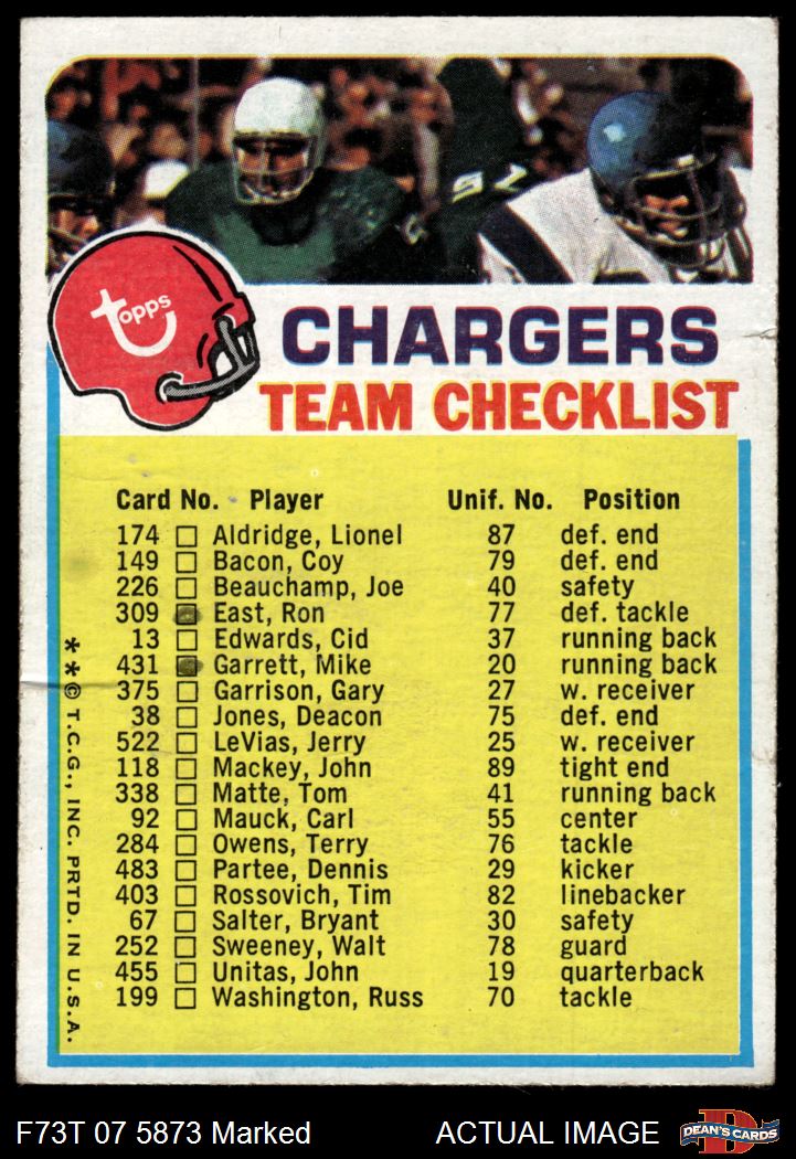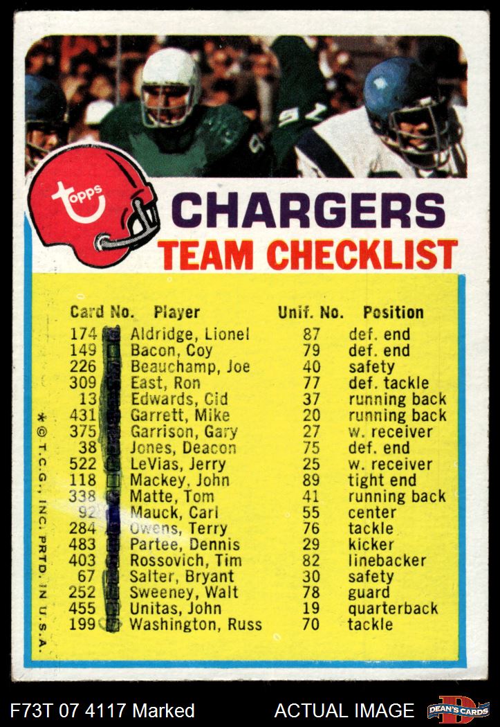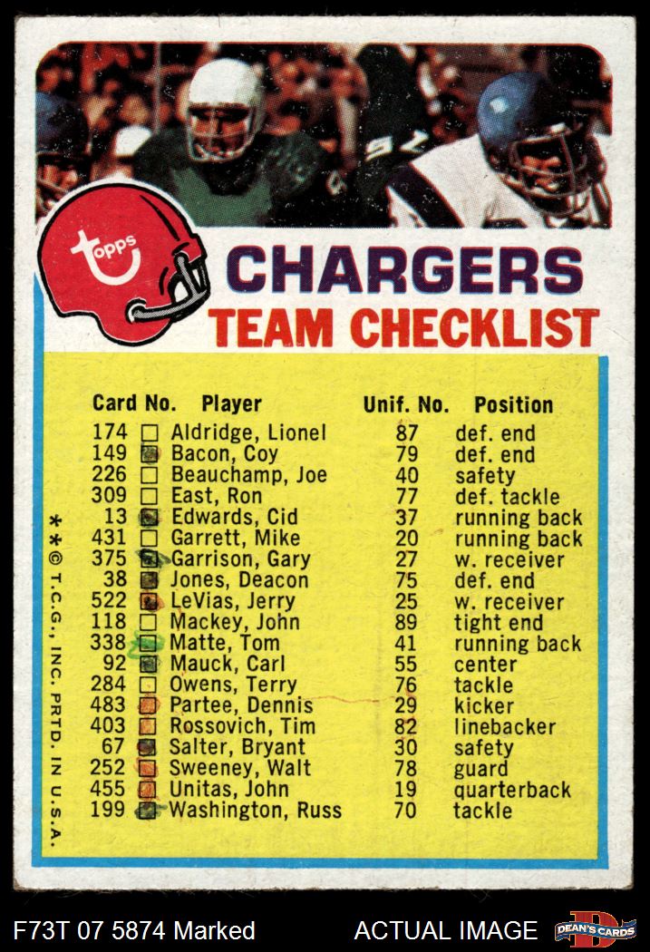 1973 Topps Checklist Chargers 1.5 - FAIR