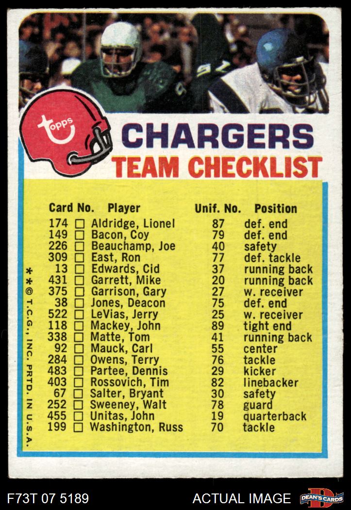 1973 Topps Checklist Chargers
