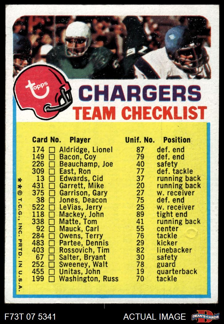 1973 Topps Football Cards (11,995 available)1973 Topps Checklist Chargers (13 available)