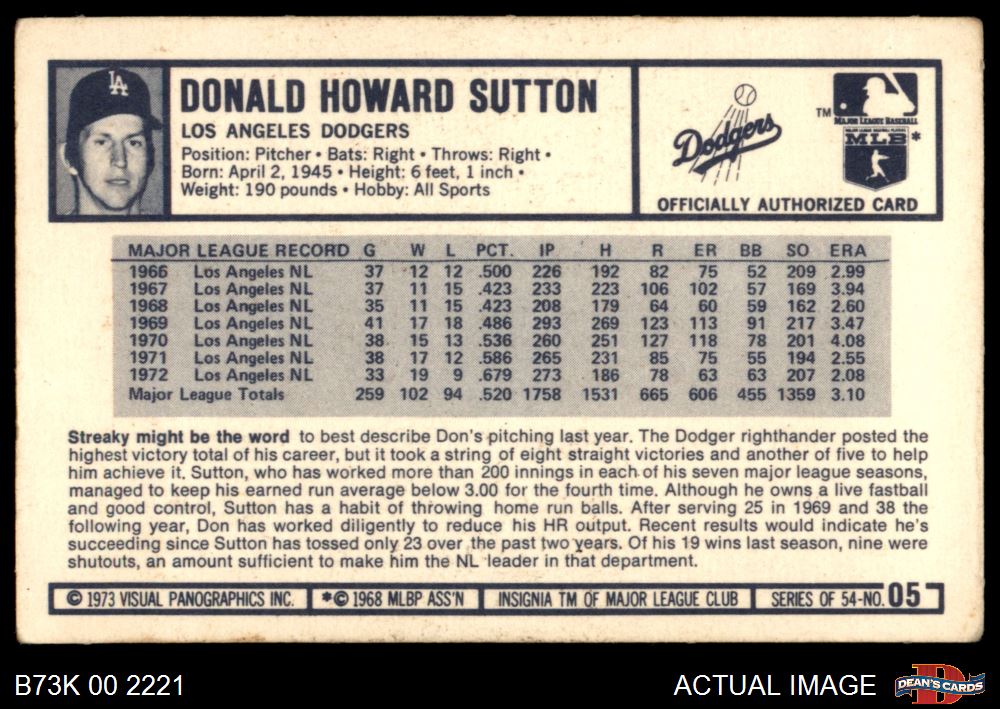 1973 Kellogg's #5 Don Sutton 4 - VG/EX