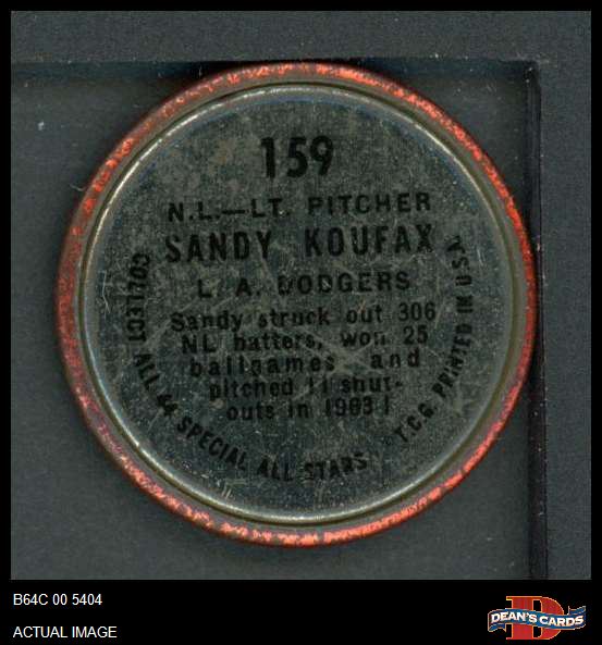 1964 Topps Coins #159 - Sandy Koufax All-Star 1.5 - FAIR