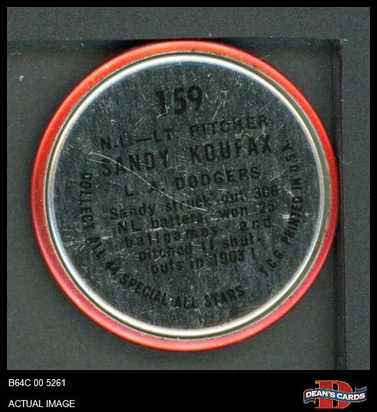 1964 Topps Coins #159 - Sandy Koufax All-Star 6 - EX/MT