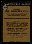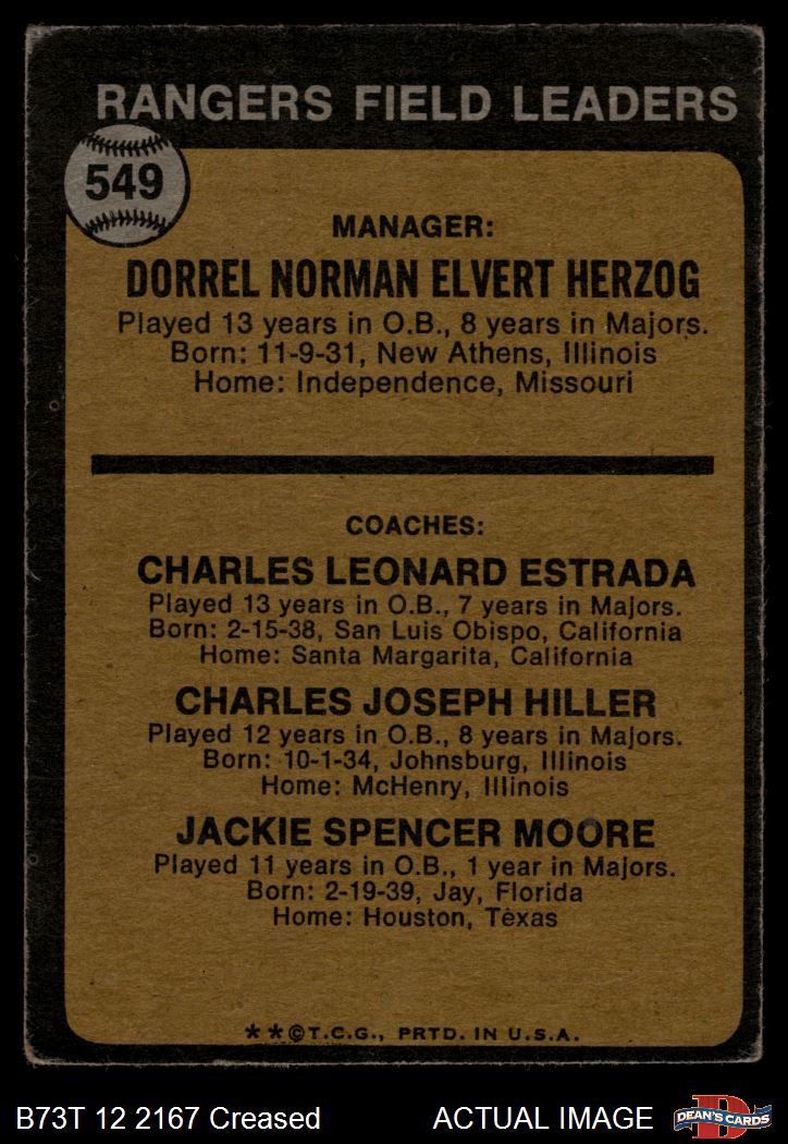 1973 Topps #549  -  Whitey Herzog / Chuck Estrada / Chuck Hiller / Jackie Moore Rangers Leaders Front Thumbnail