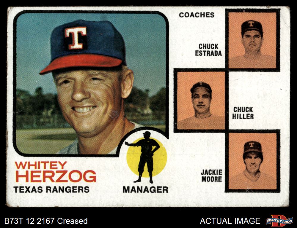 1973 Topps #549 - Whitey Herzog / Chuck Estrada / Chuck Hiller / Jackie Moore Rangers Leaders 1.5 - FAIR