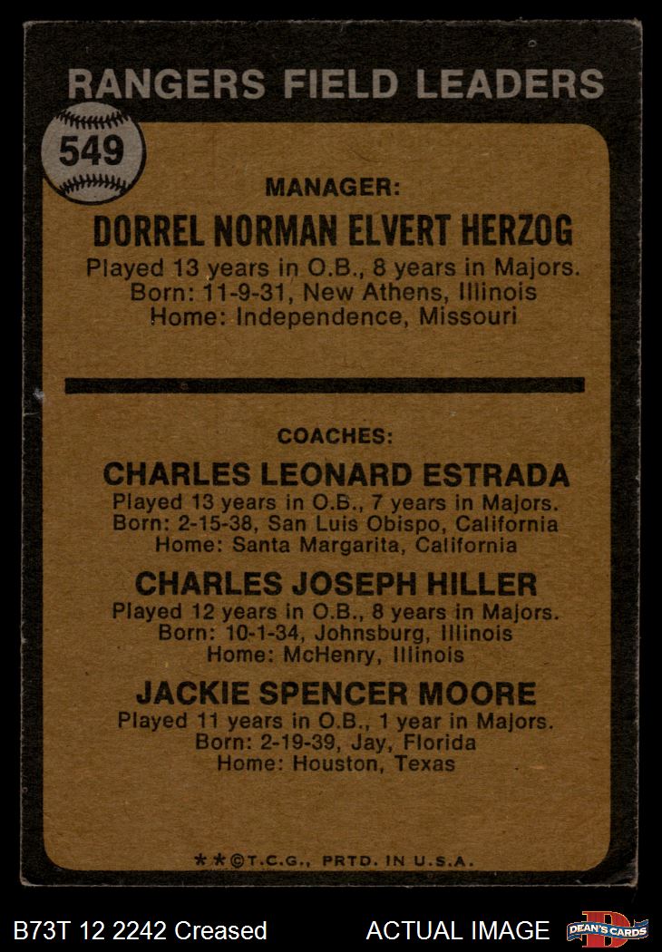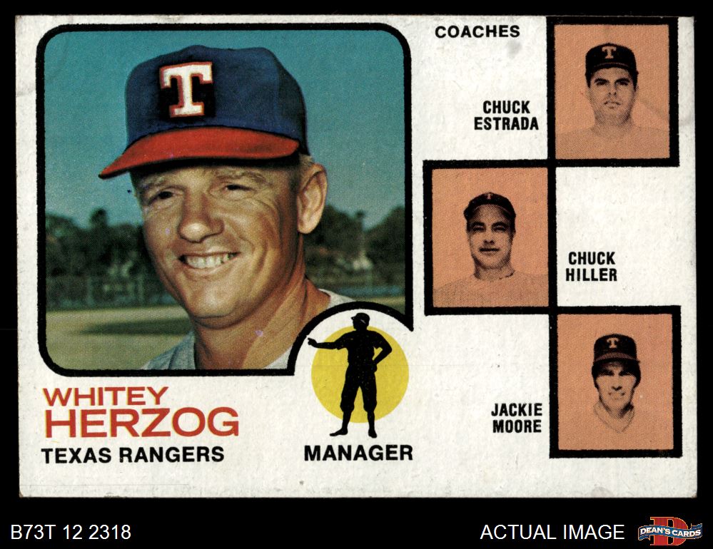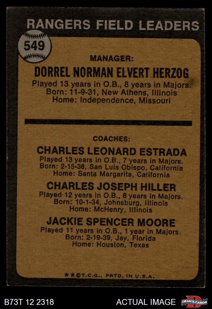1973 Topps #549 - Whitey Herzog / Chuck Estrada / Chuck Hiller / Jackie Moore Rangers Leaders 2 - GOOD