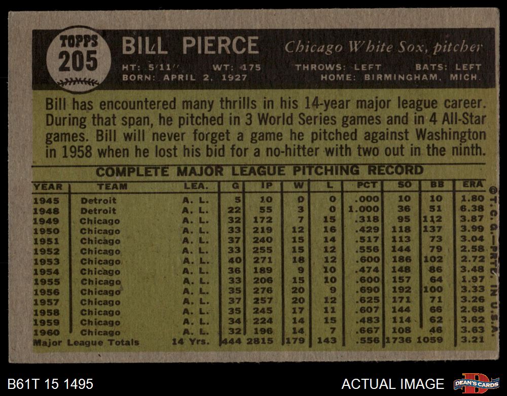 1961 Topps #205 Bill Pierce 4 - VG/EX