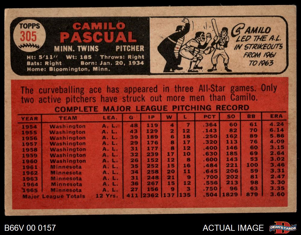 1966 Topps Venezuelan #305 Camilo Pascual 5 - EX