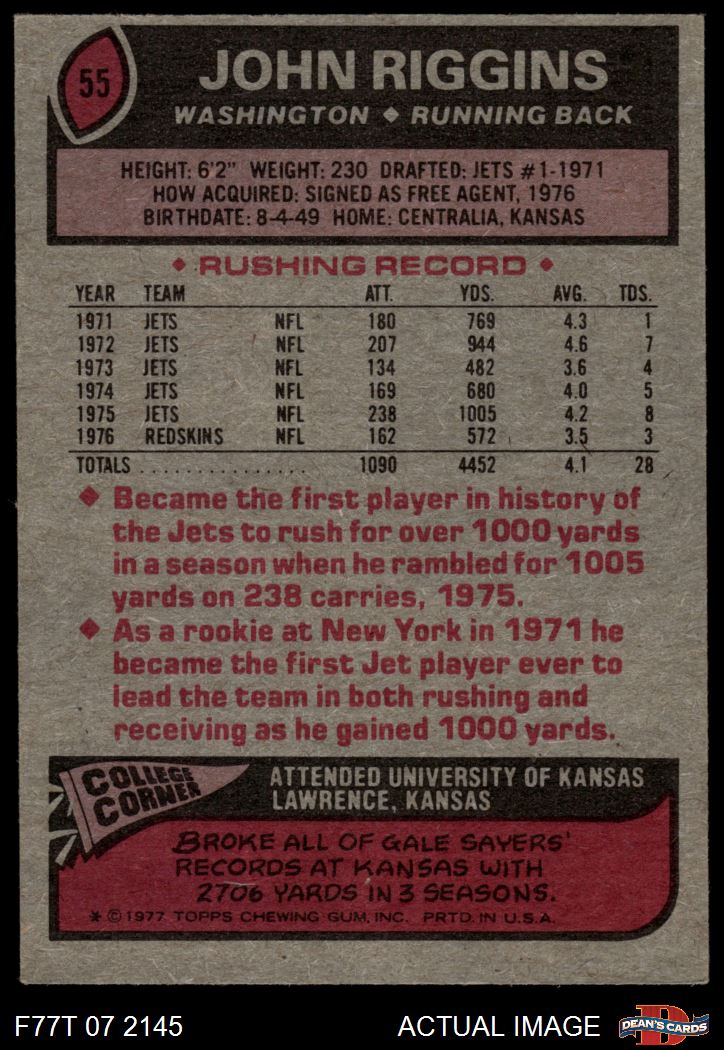 1977 Topps #55 John Riggins 4 - VG/EX