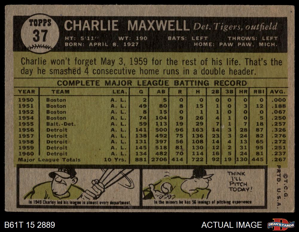 1961 Topps #37 Charlie Maxwell 3 - VG