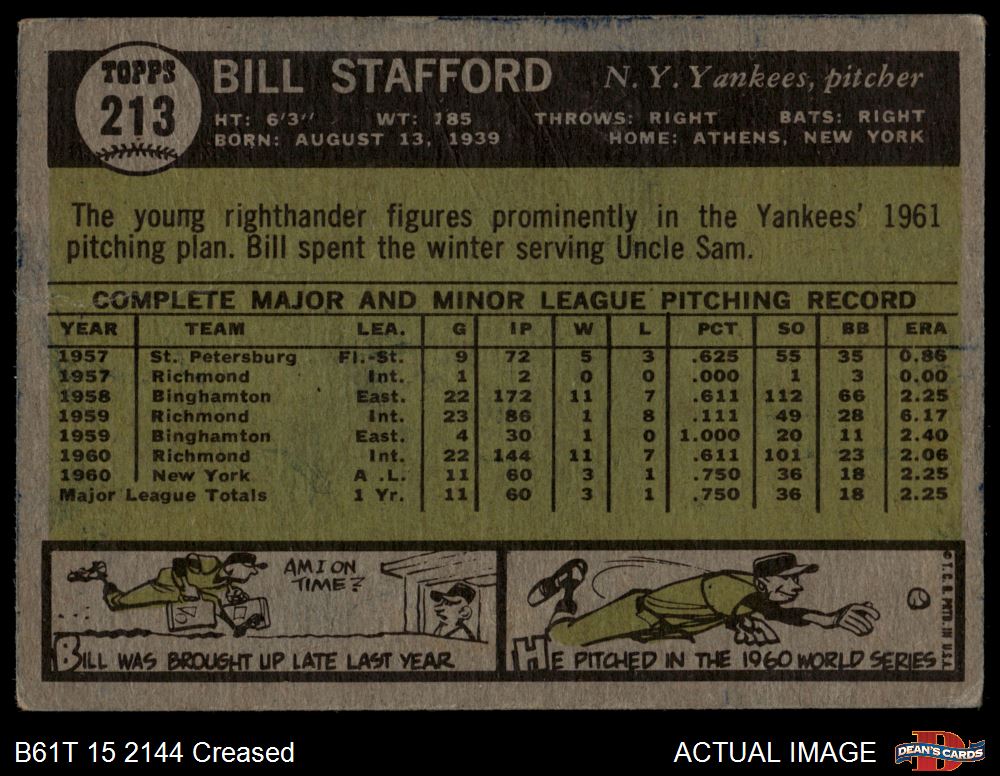 1961 Topps #213 Bill Stafford 2 - GOOD