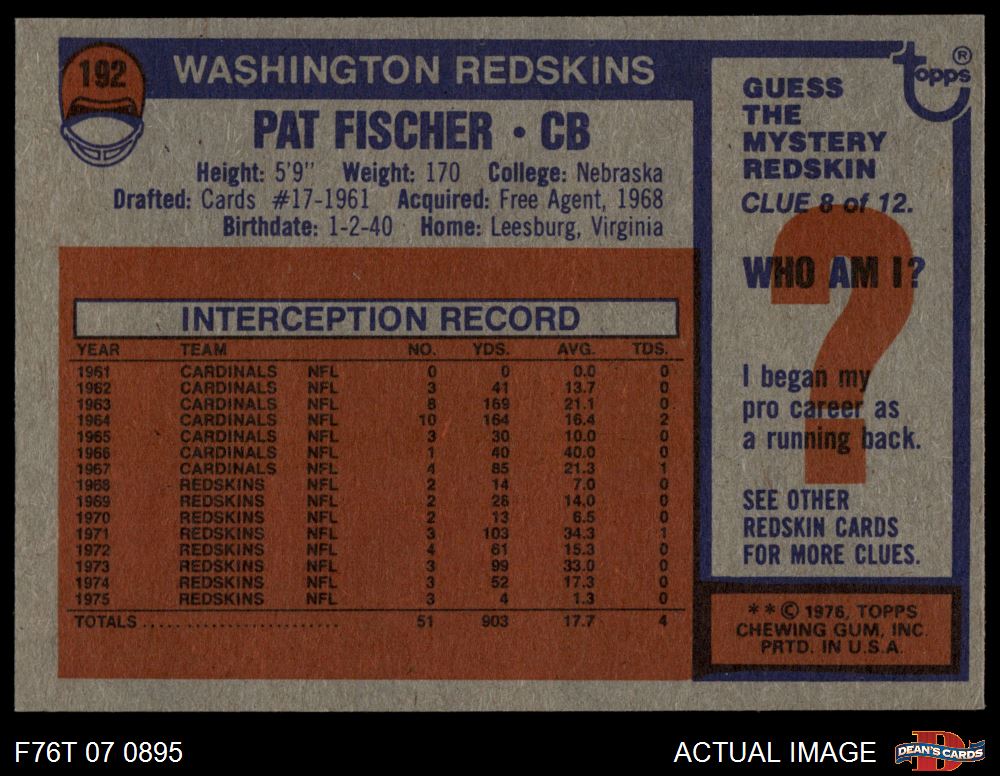1976 Topps #192 Pat Fischer 7 - NM