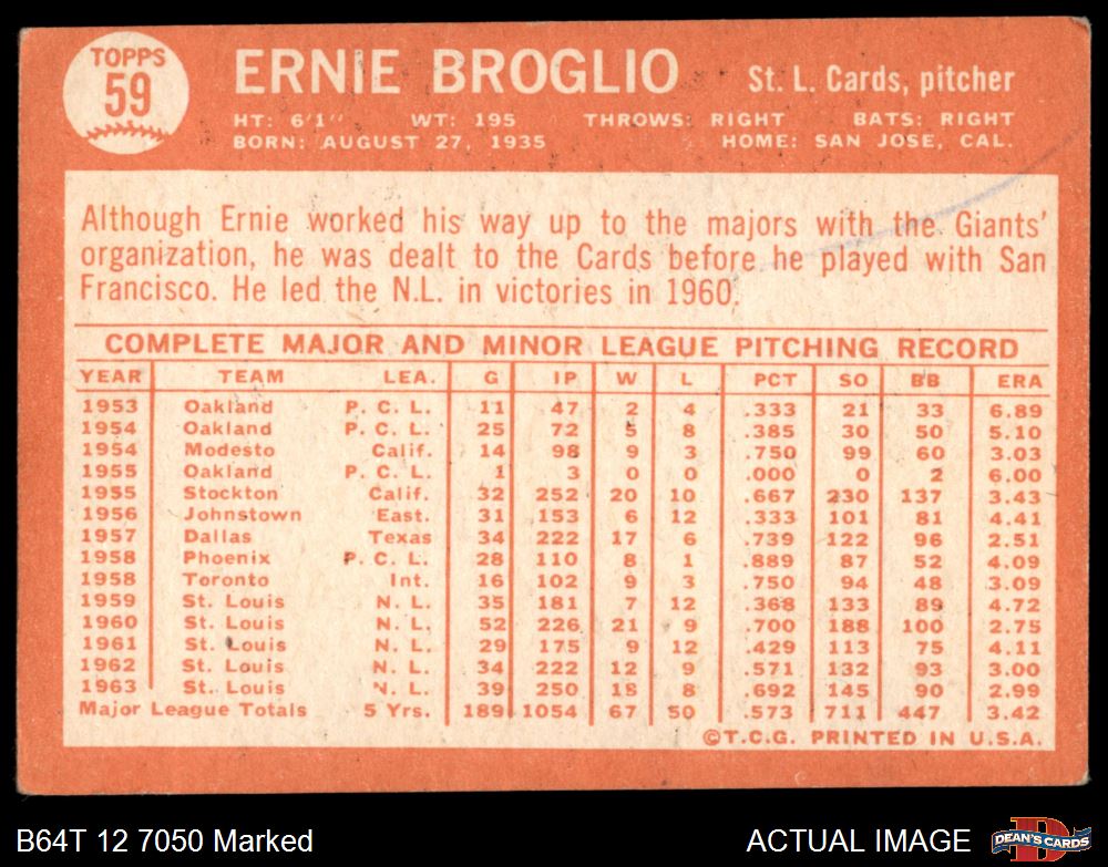 1964 Topps #59 Ernie Broglio Front Thumbnail