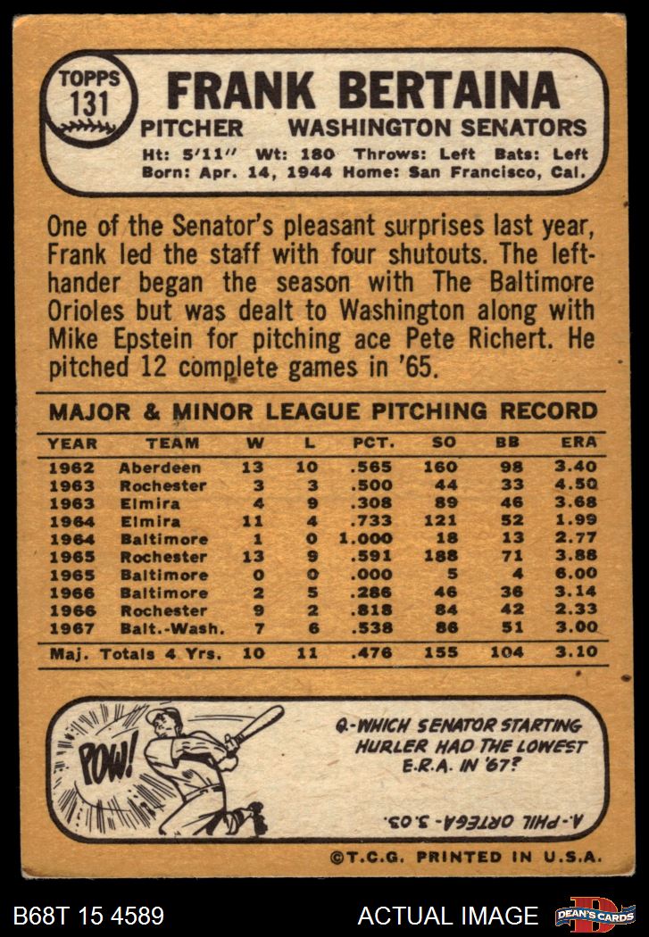 1968 Topps Baseball Cards (13,150 available)1968 Topps Senators (761 available)