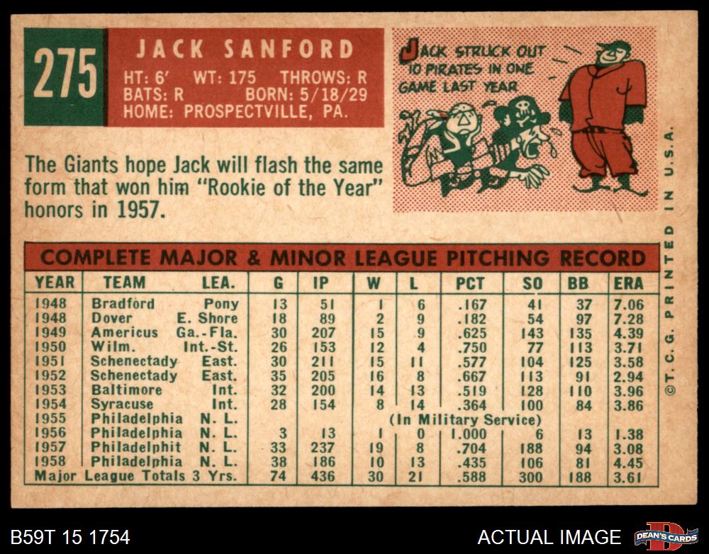 1959 Topps #275 Jack Sanford 5.5 - EX+
