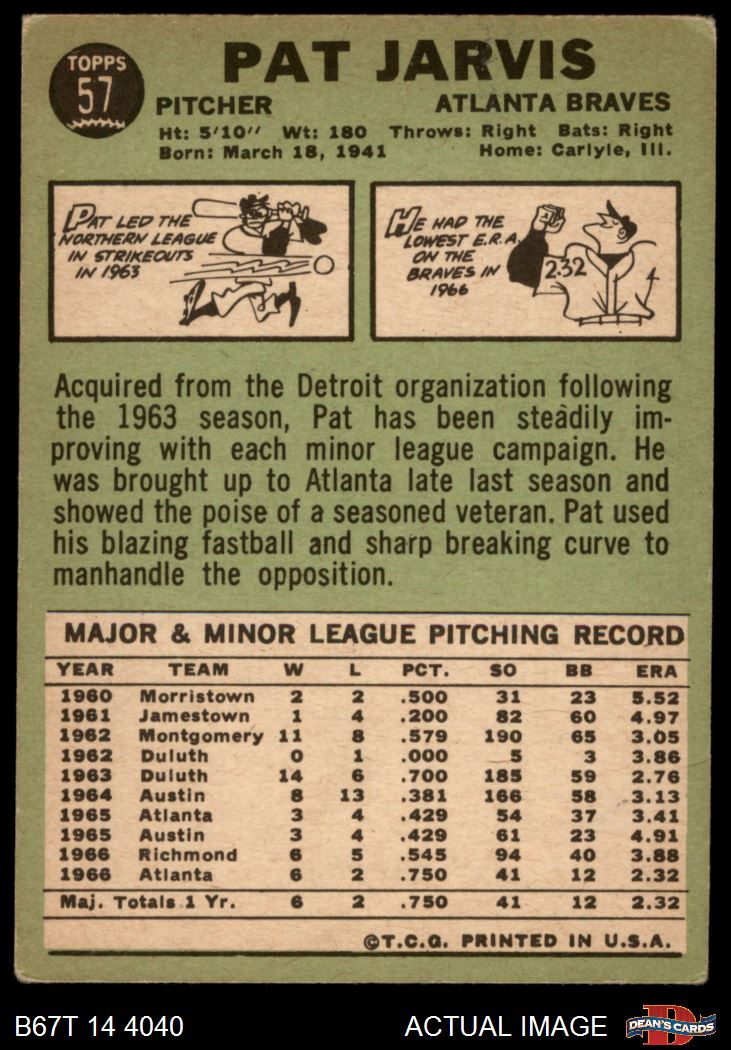 1967 Topps #57 Pat Jarvis 3 - VG