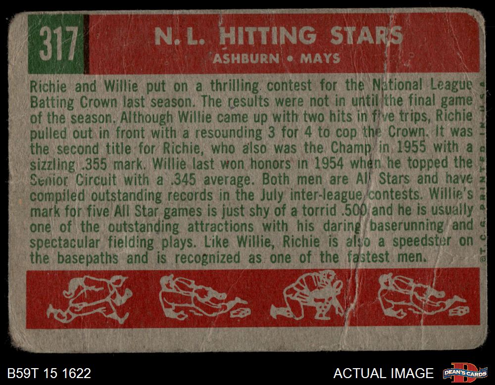 1959 Topps #317 - Willie Mays / Richie Ashburn NL Hitting Kings AUTHENTIC