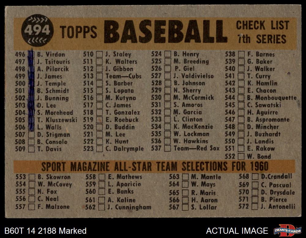 1960 Topps #494  Orioles Team Checklist Front Thumbnail