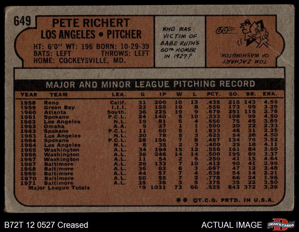1972 Topps #649 Pete Richert 1 - POOR