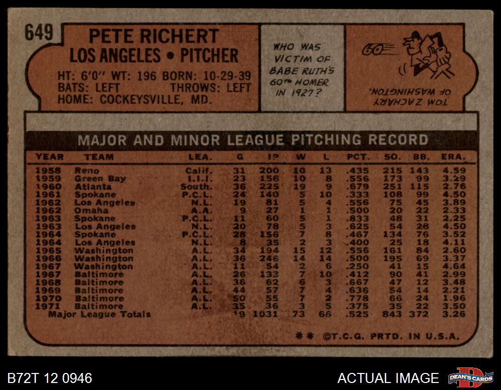 1972 Topps #649 Pete Richert 4.5 - VG/EX+
