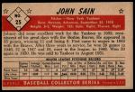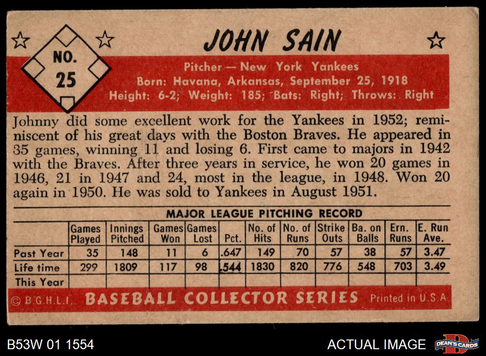 1953 Bowman B&W #25 Johnny Sain 4 - VG/EX