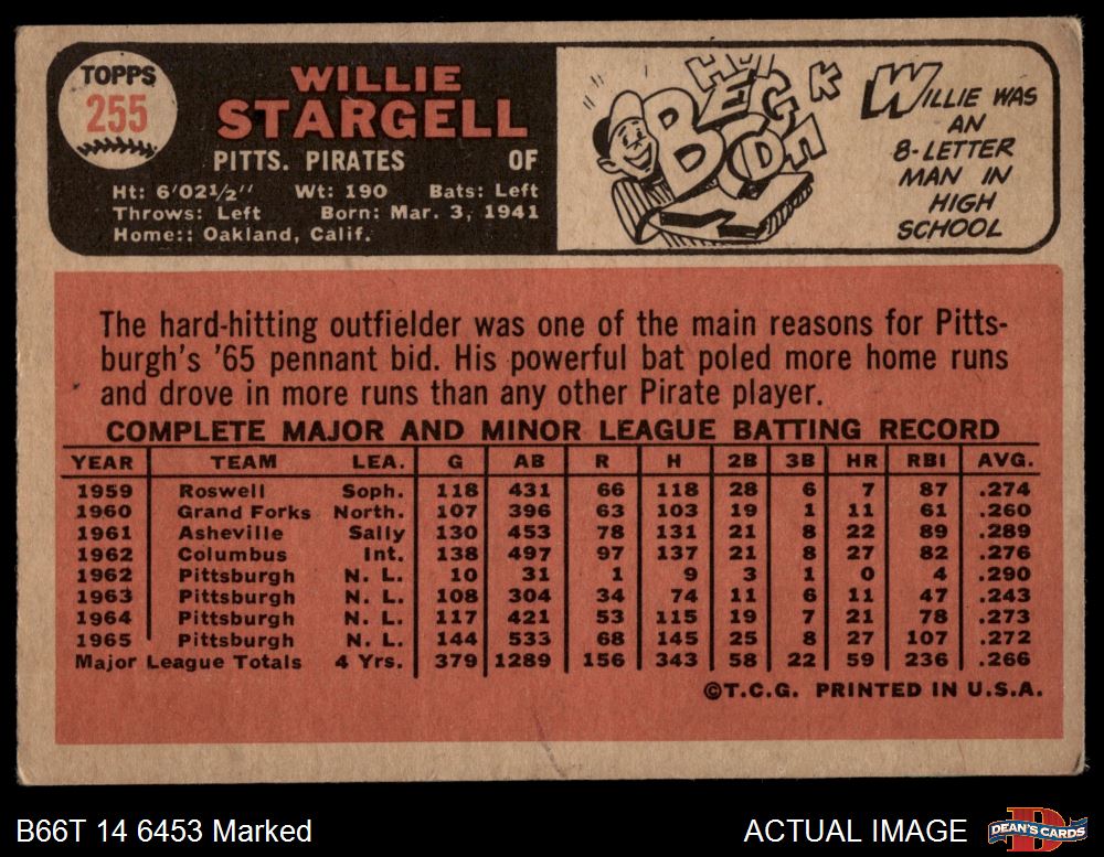 1966 Topps #255 Willie Stargell 1.5 - FAIR