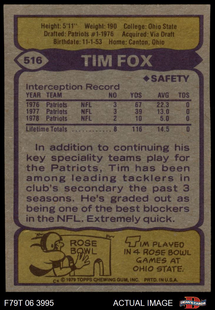 1979 Topps #516 Tim Fox 5 - EX