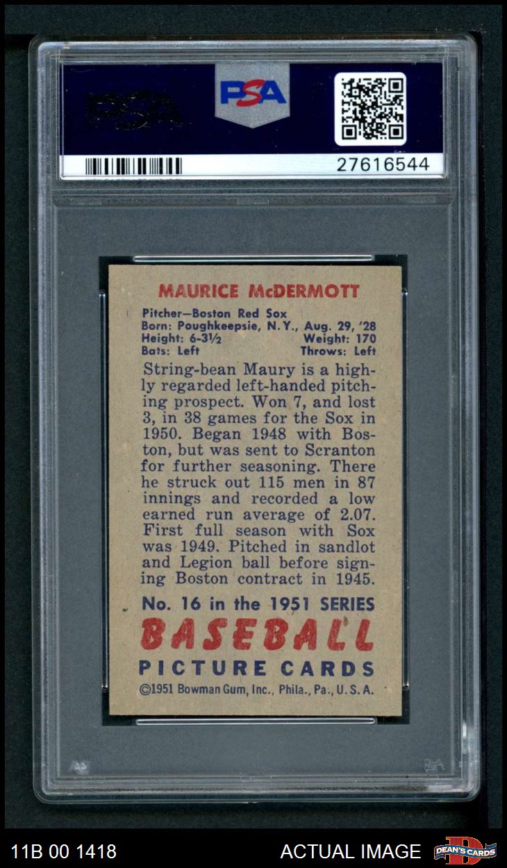 1951 Bowman #16 Mickey McDermott PSA 7 - NM