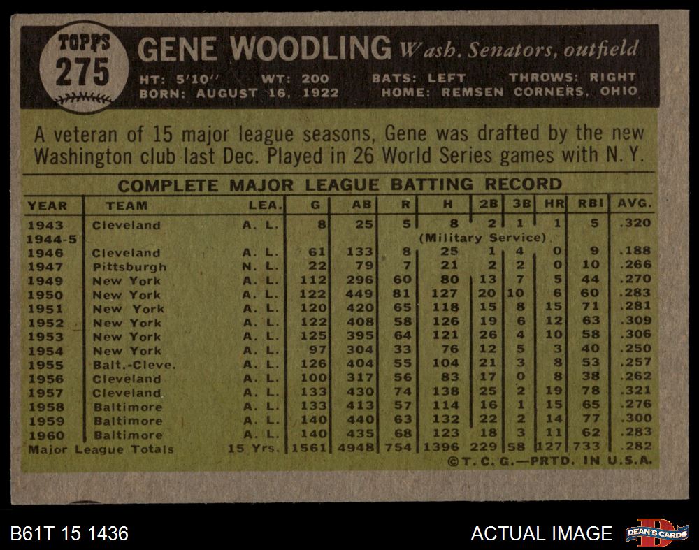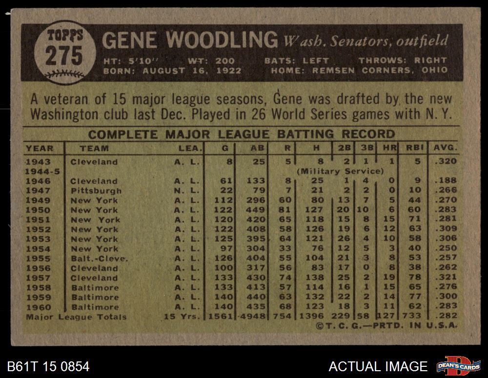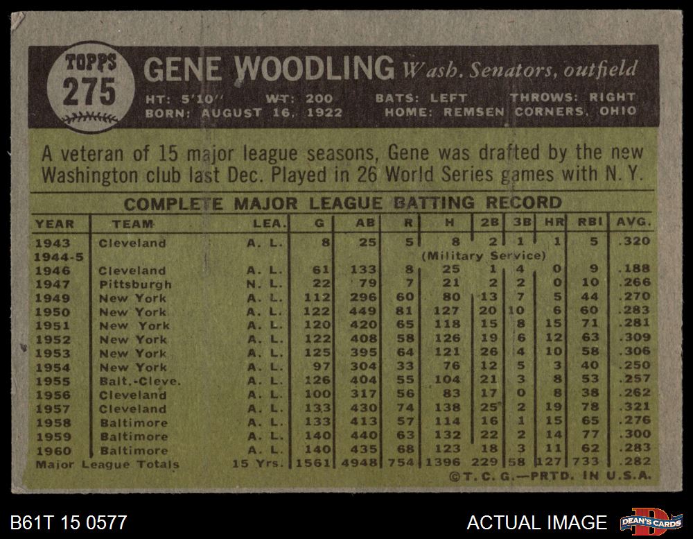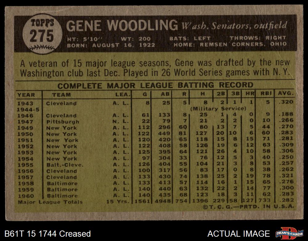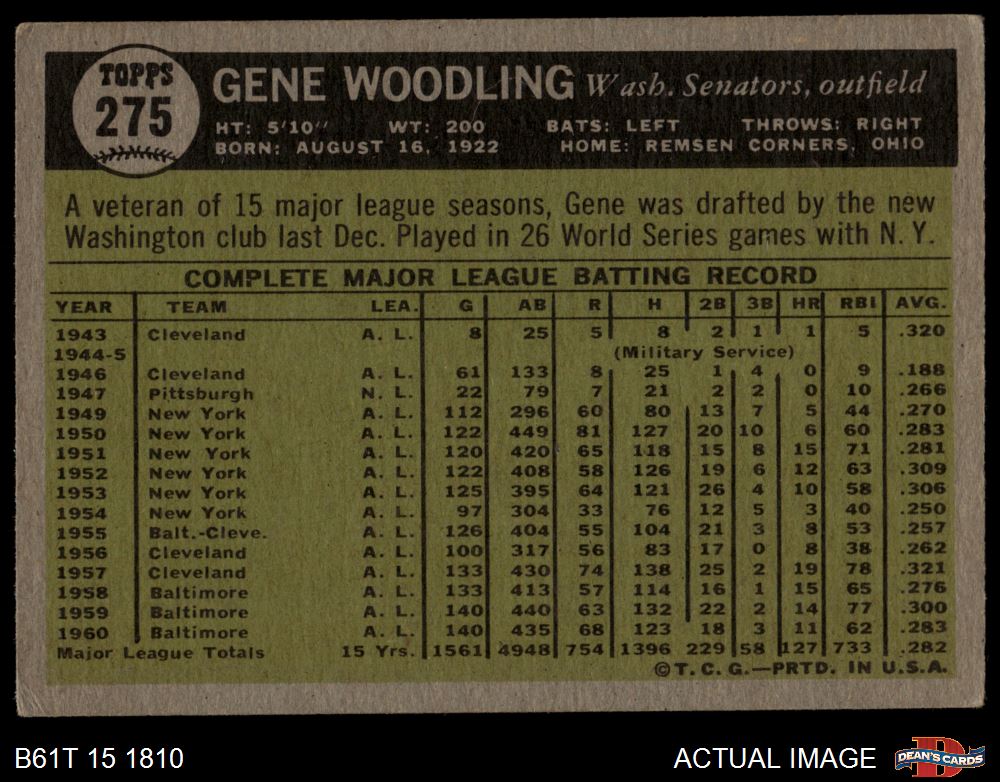 1961 Topps #275 Gene Woodling
