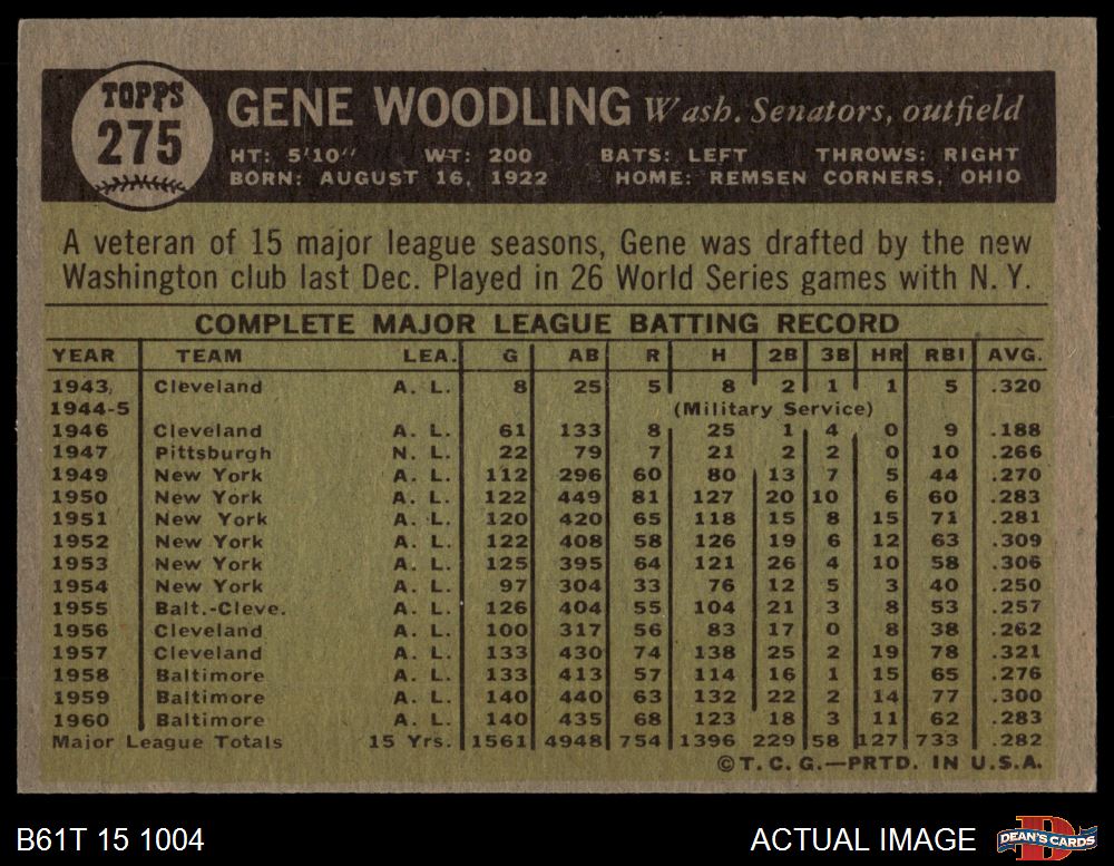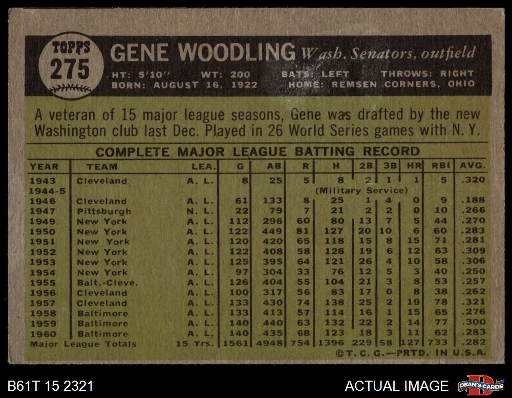 1961 Topps #275 Gene Woodling 4 - VG/EX