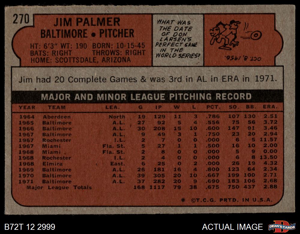 1972 Topps #270 Jim Palmer