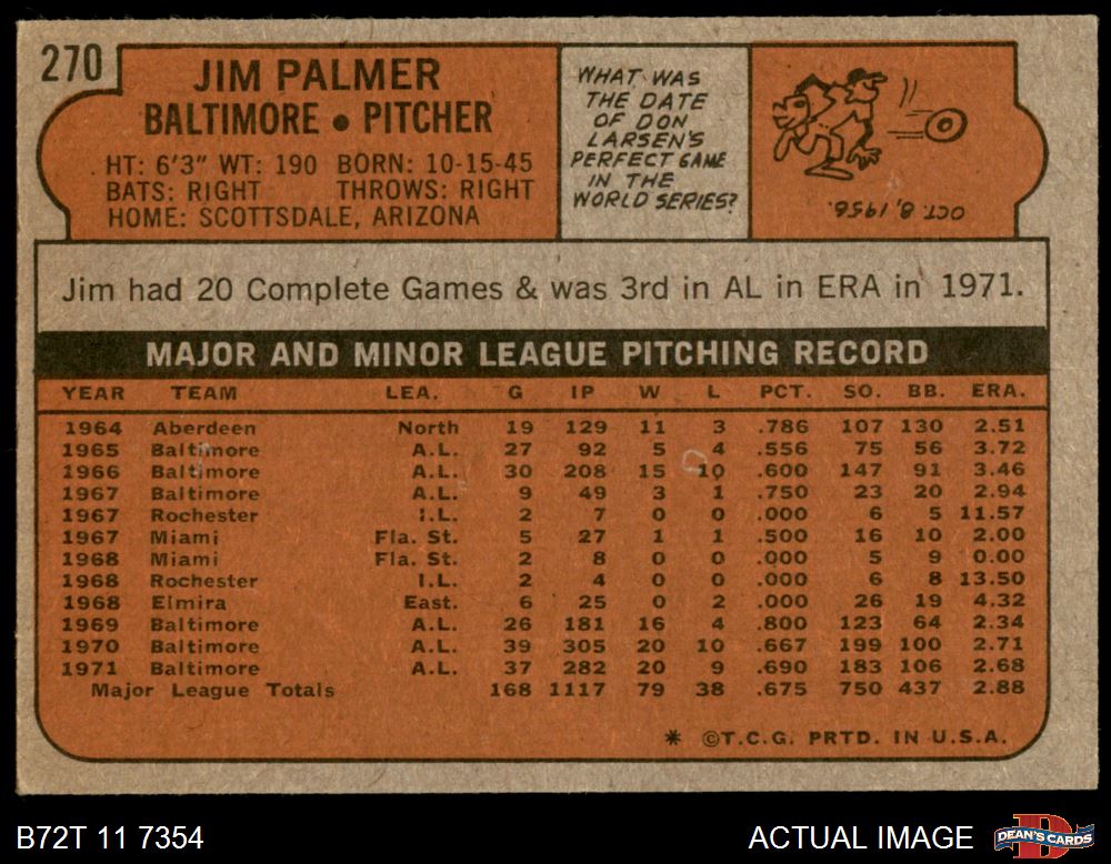 1972 Topps #270 Jim Palmer 2 - GOOD