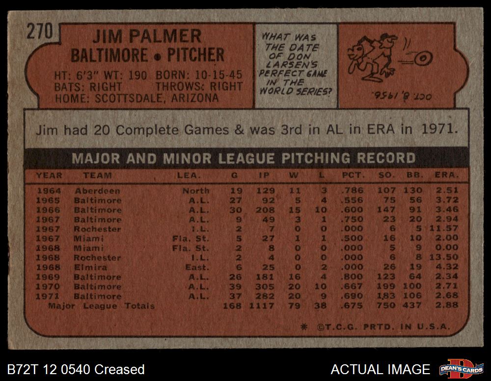 1972 Topps #270 Jim Palmer 3.5 - VG+