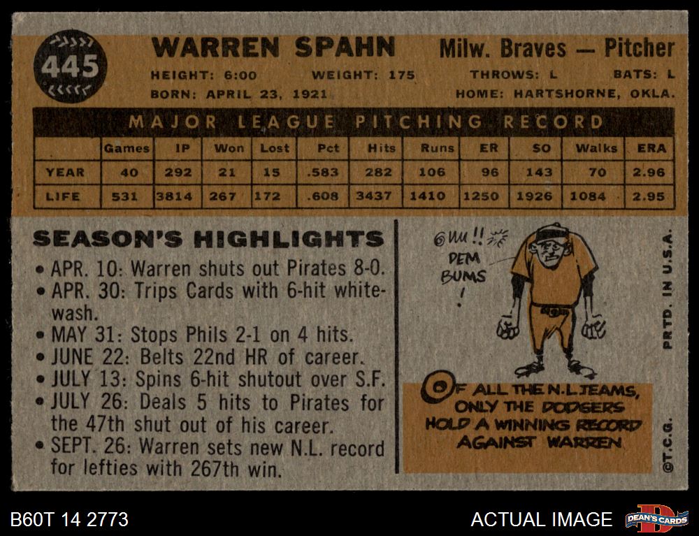 1960 Topps #445 Warren Spahn 4 - VG/EX