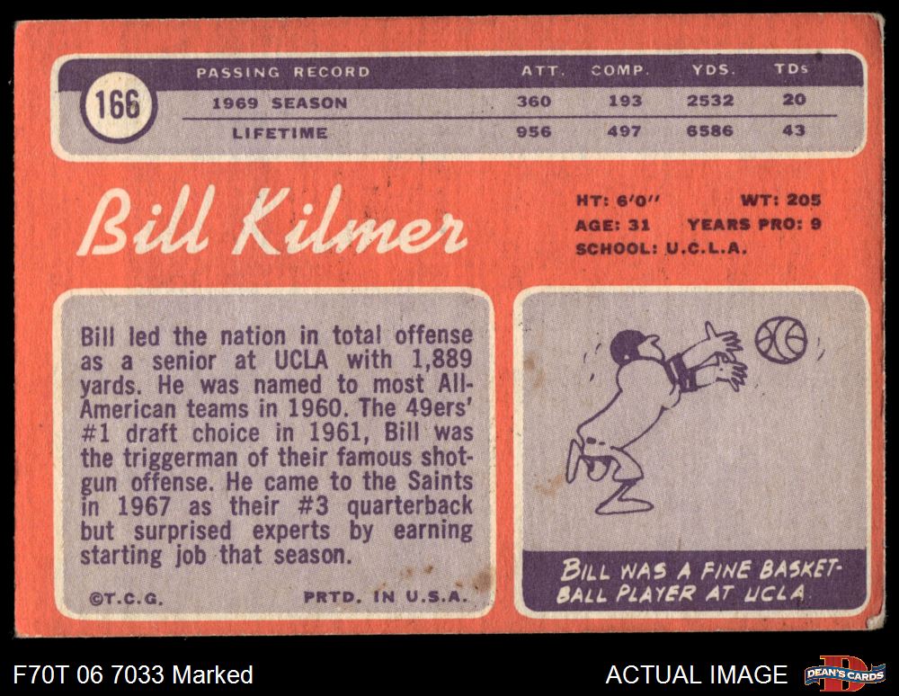 1970 Topps #166 Billy Kilmer 1 - POOR
