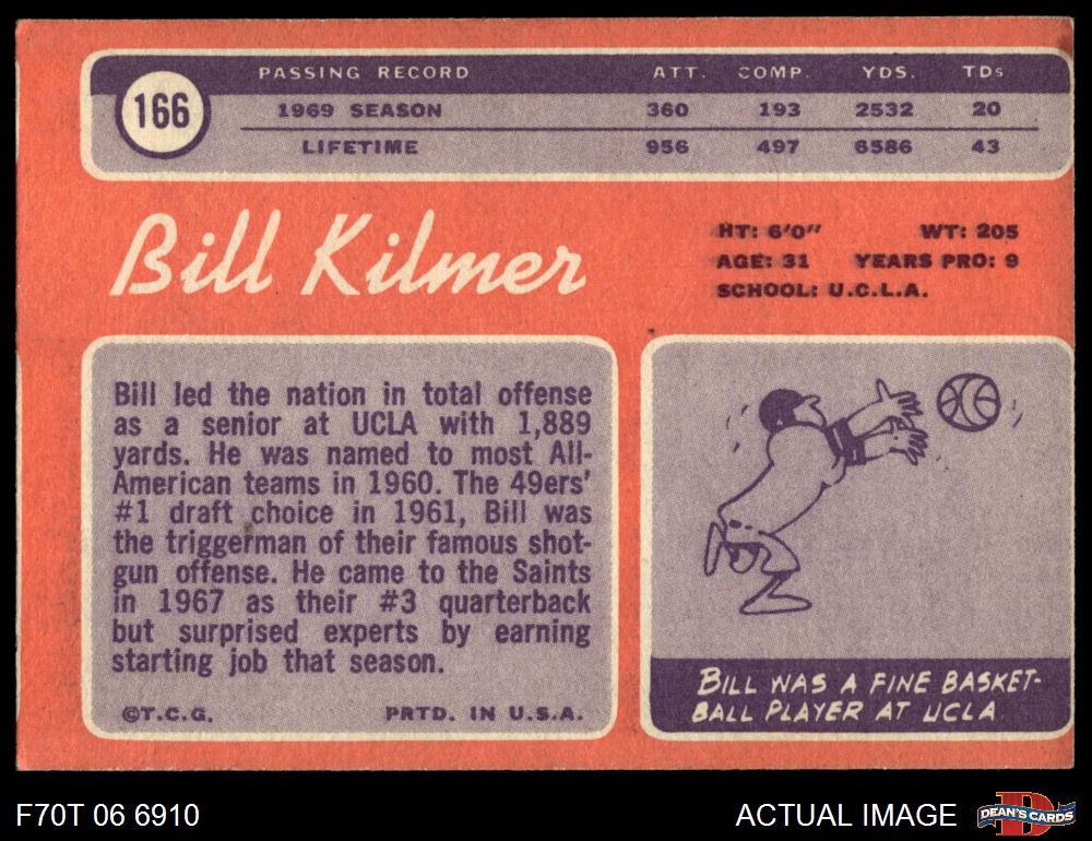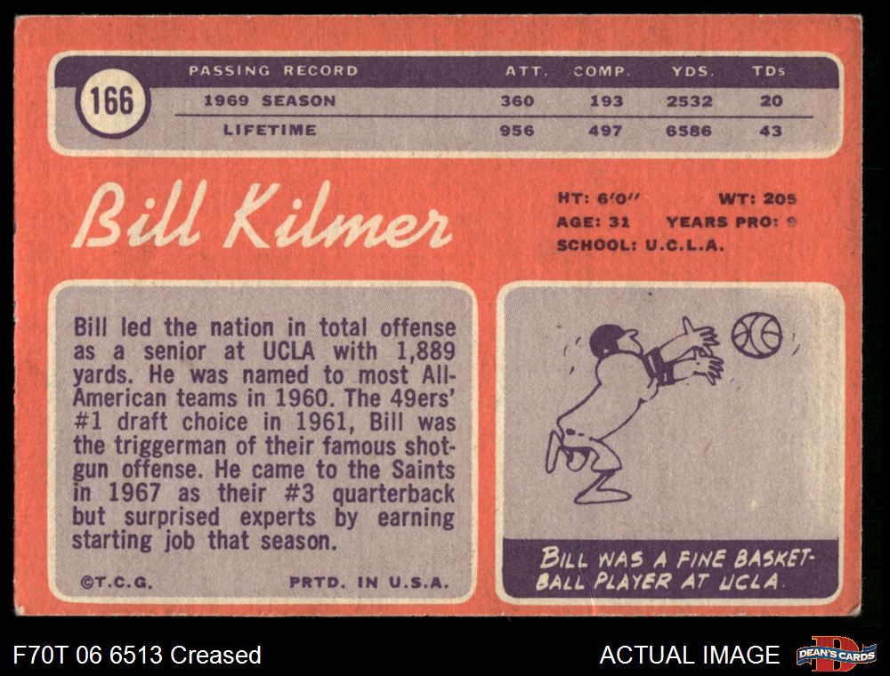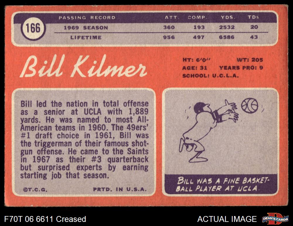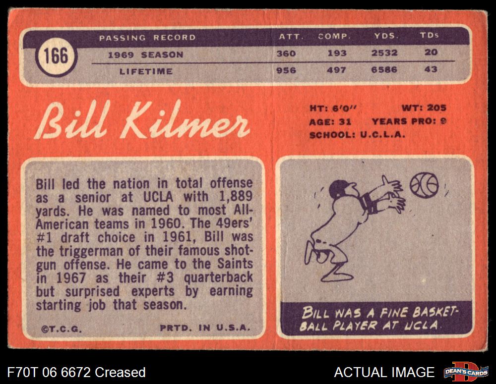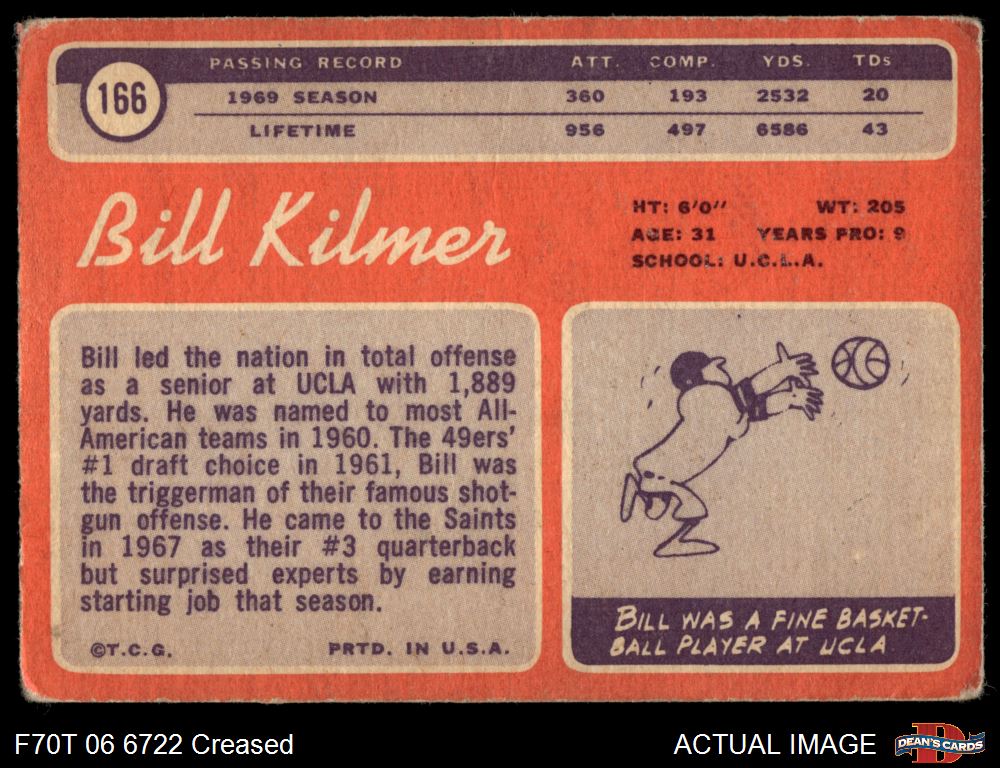 1970 Topps #166 Billy Kilmer 2 - GOOD