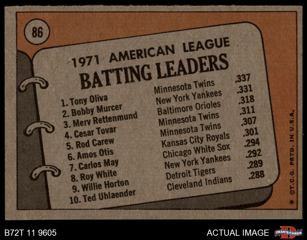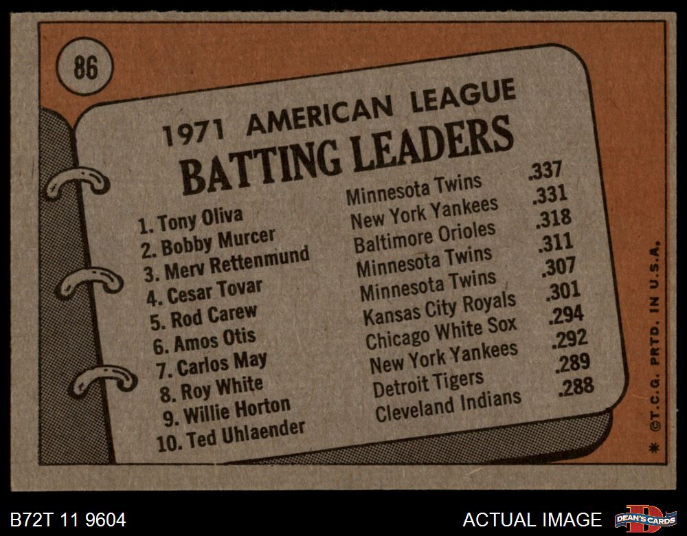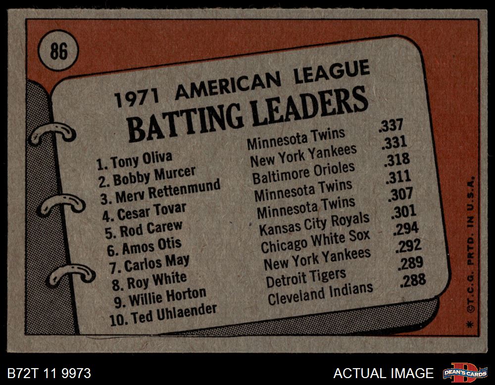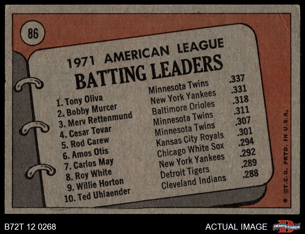 1972 Topps #86 AL Batting Leaders