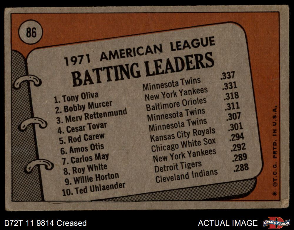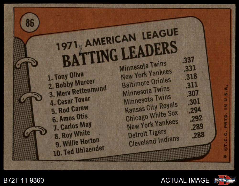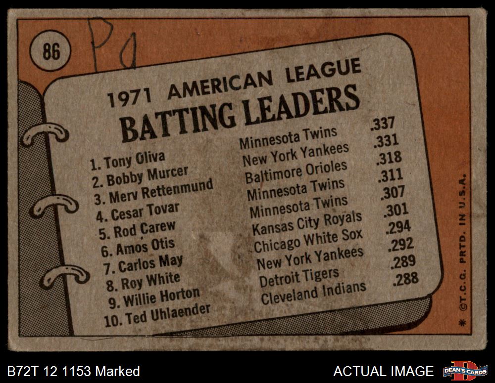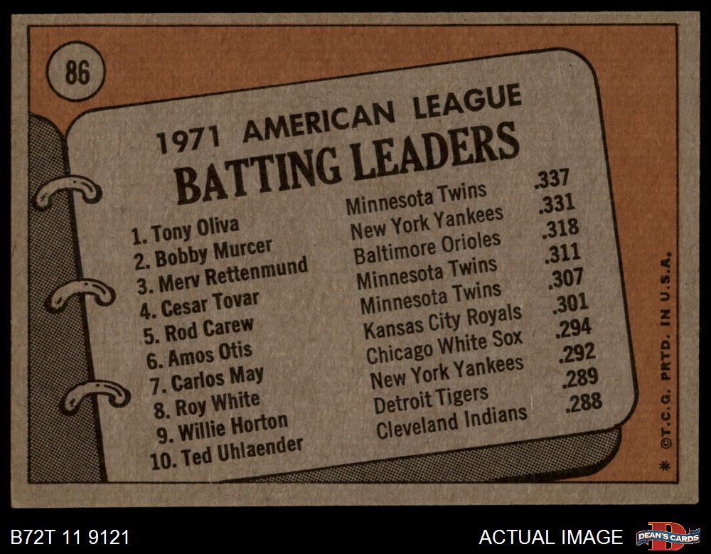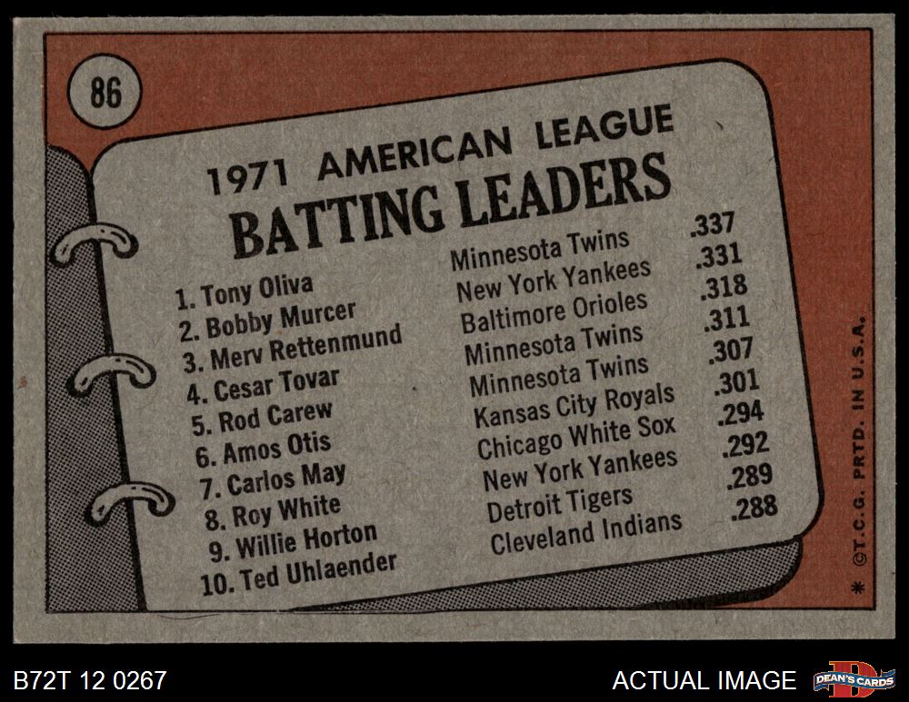 1972 Topps #86 AL Batting Leaders