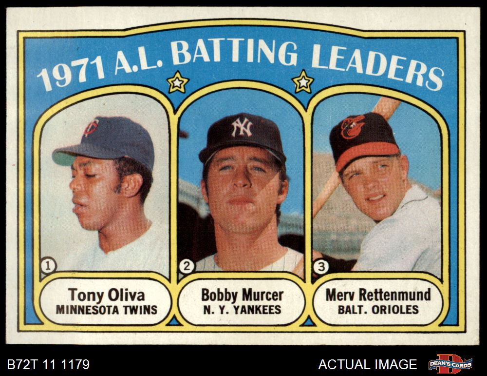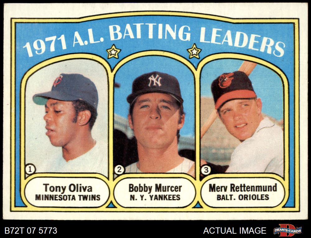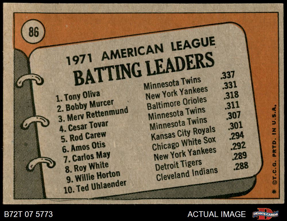 1972 Topps #86 - Bobby Murcer / Tony Oliva / Merv Rettenmund AL Batting Leaders 6.5 - EX/MT+