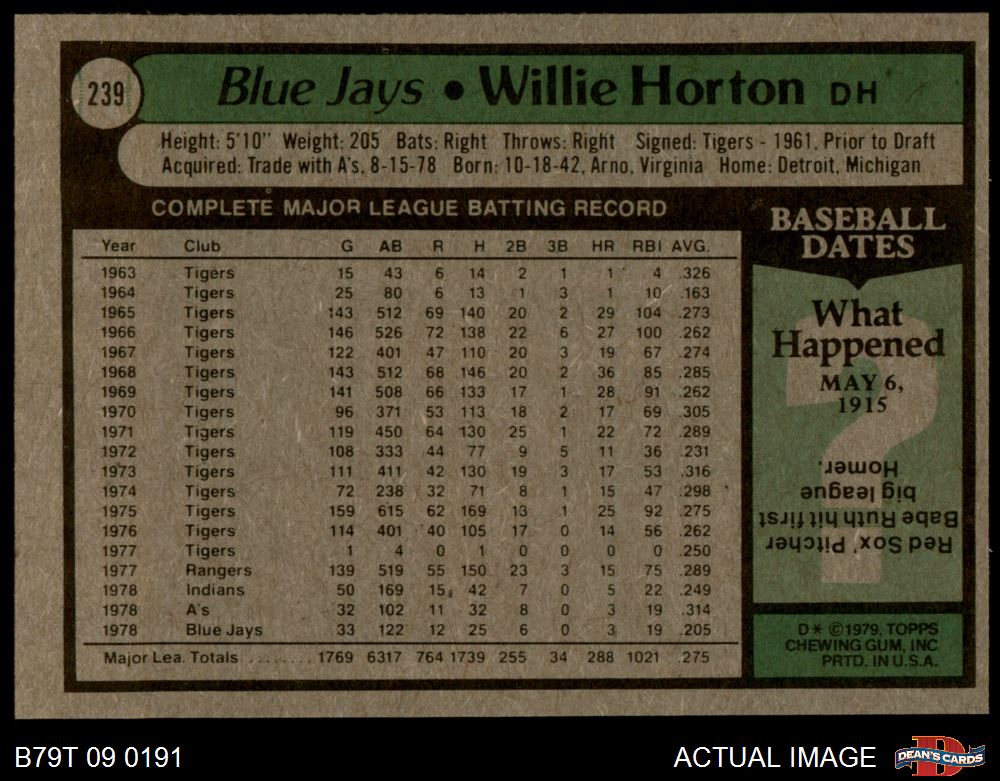 1979 Topps #239 Willie Horton 8 - NM/MT