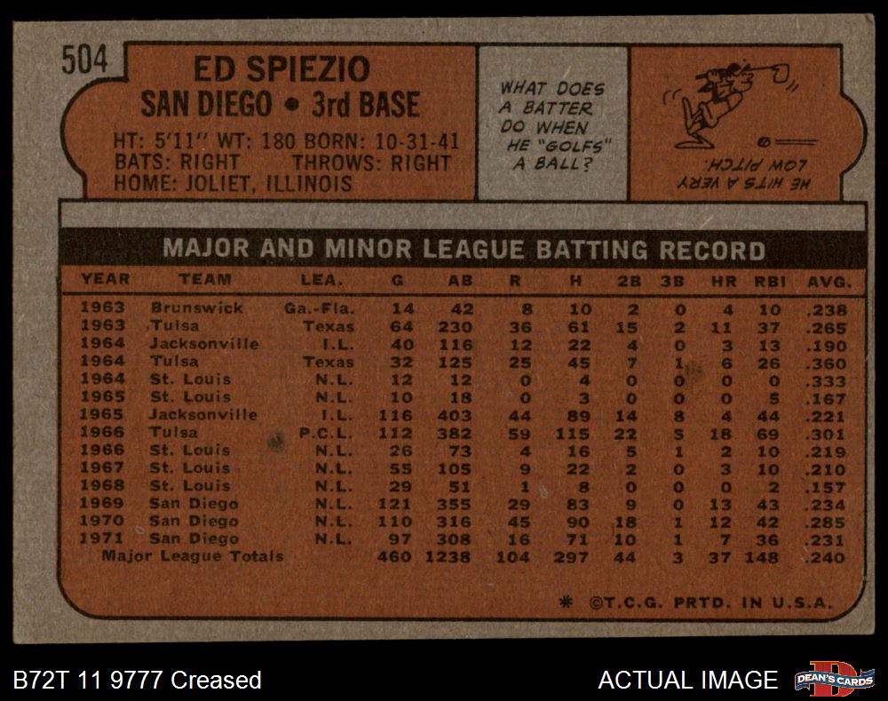 1972 Topps #504 Ed Spiezio Front Thumbnail
