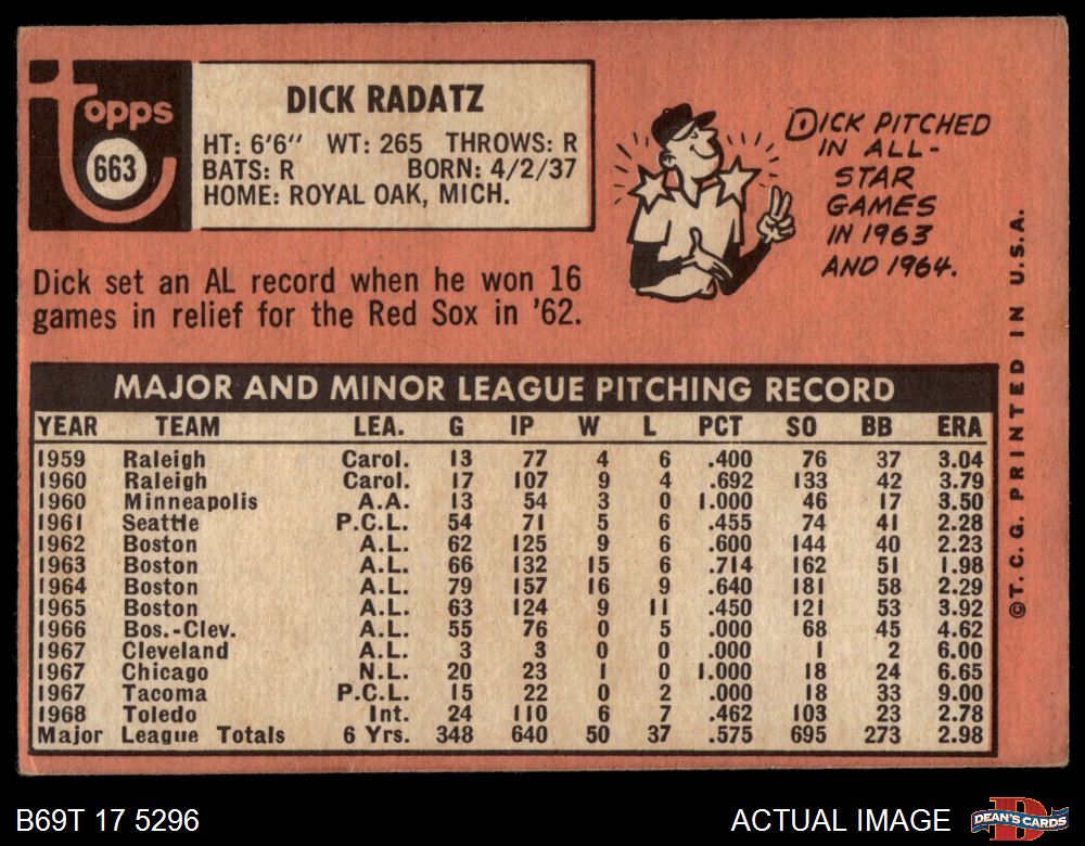 1969 Topps #663 Dick Radatz 2 - GOOD
