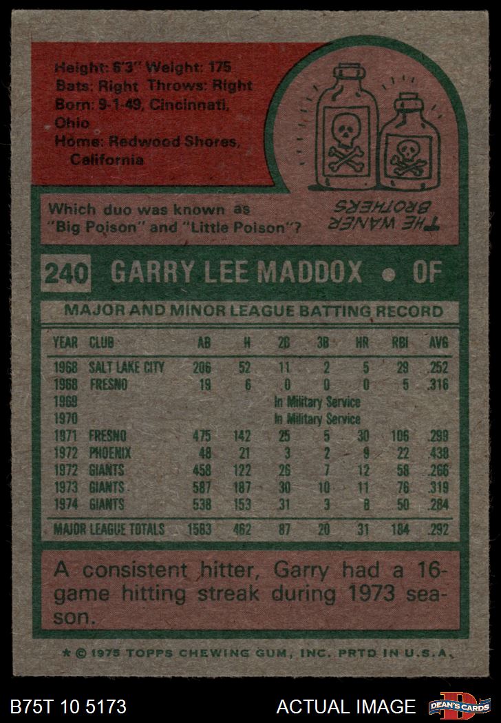 1975 Topps #240 Garry Maddox