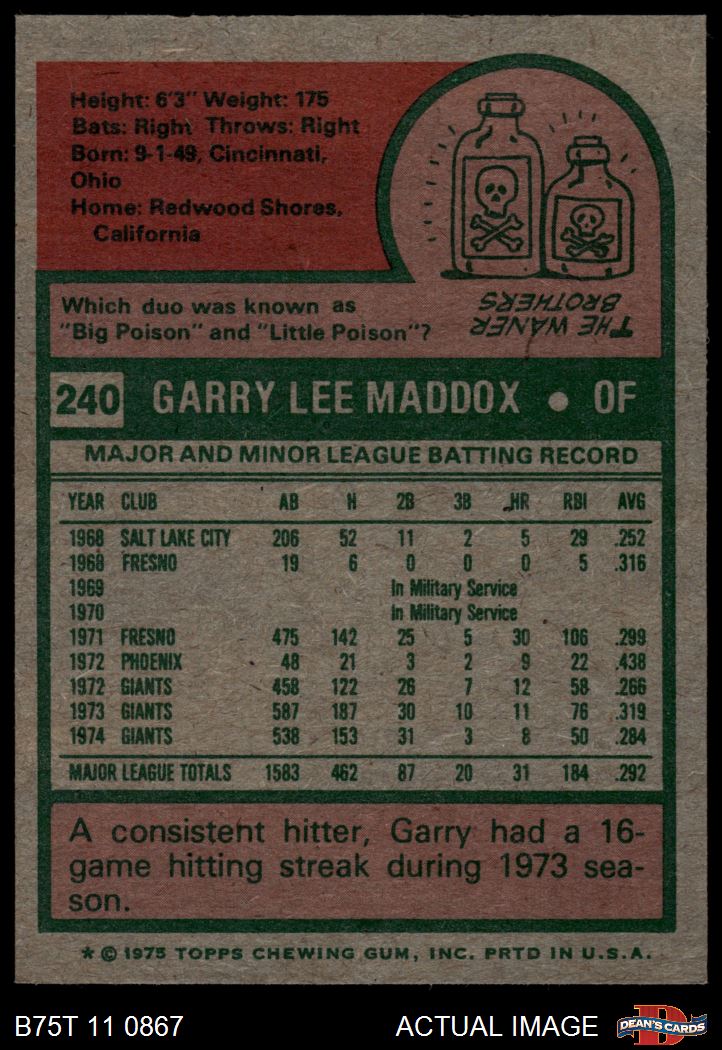 1975 Topps #240 Garry Maddox 7.5 - NM+