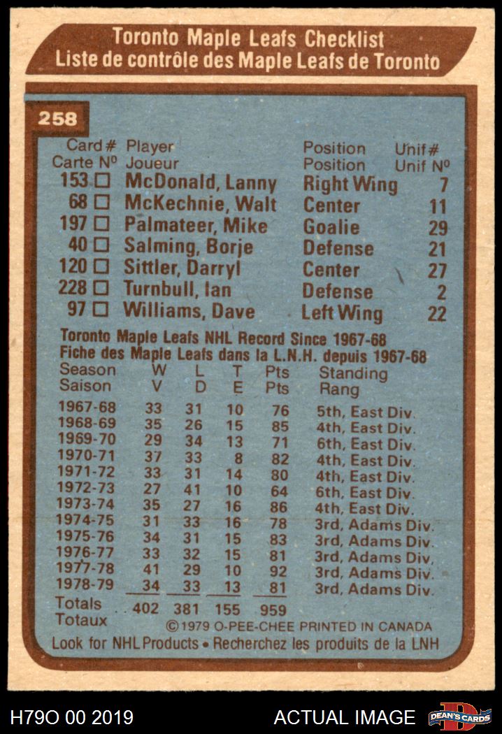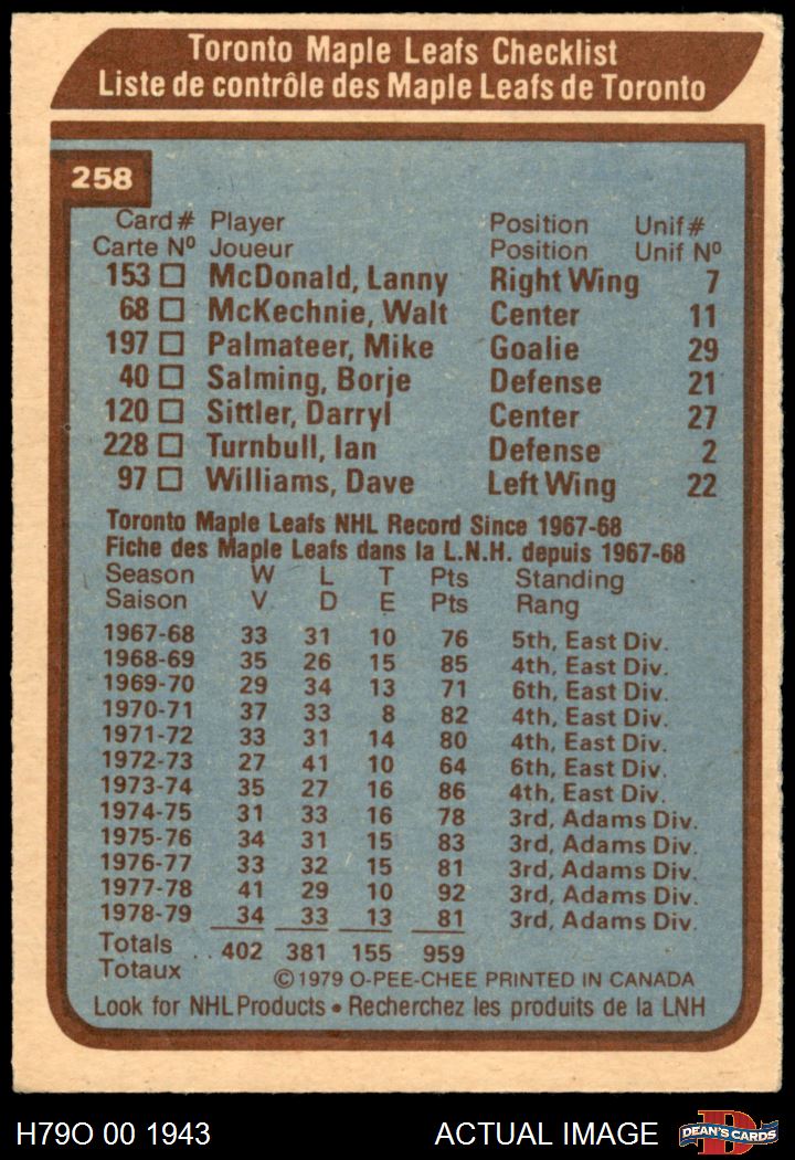 1979 O-Pee-Chee #258 Maple Leafs Team Checklist 7 - NM