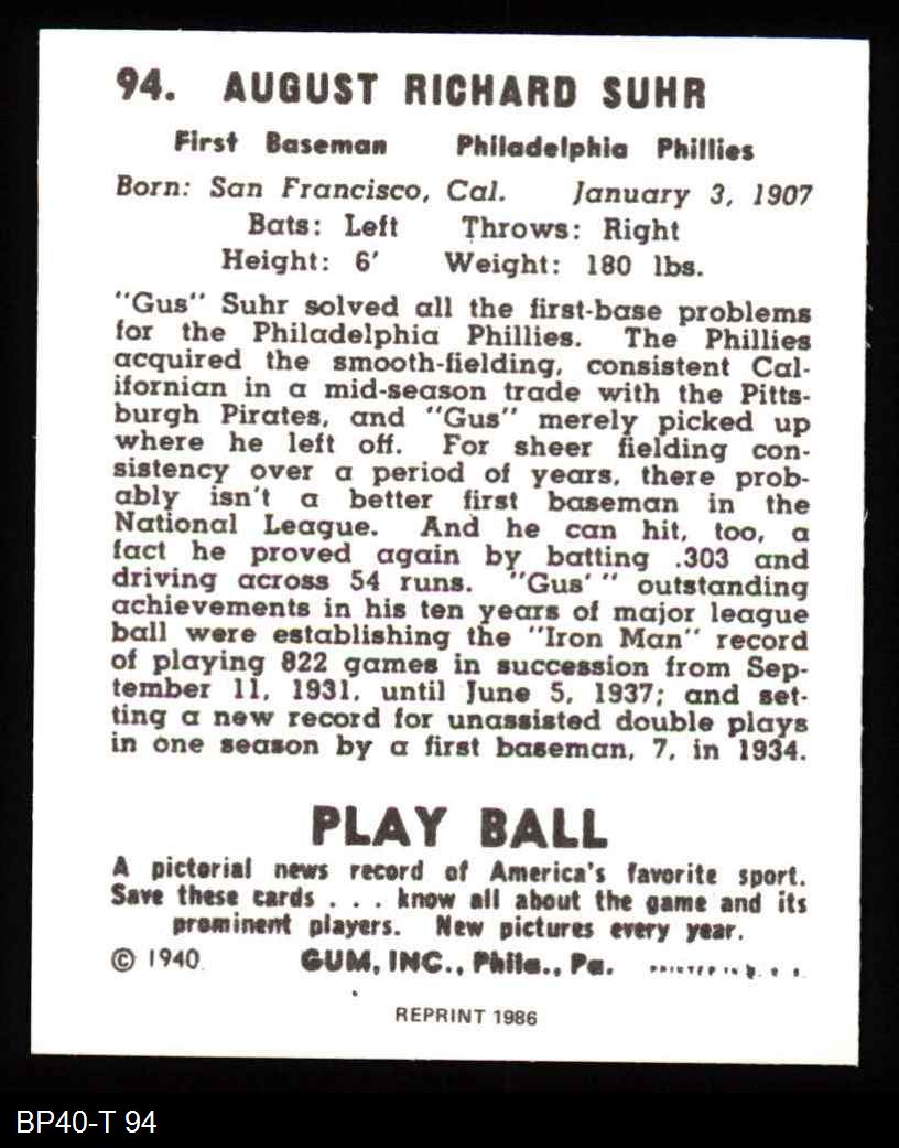 1940 Play Ball Reprint (1,465 available)1940 Play Ball Reprint Phillies (77 available)