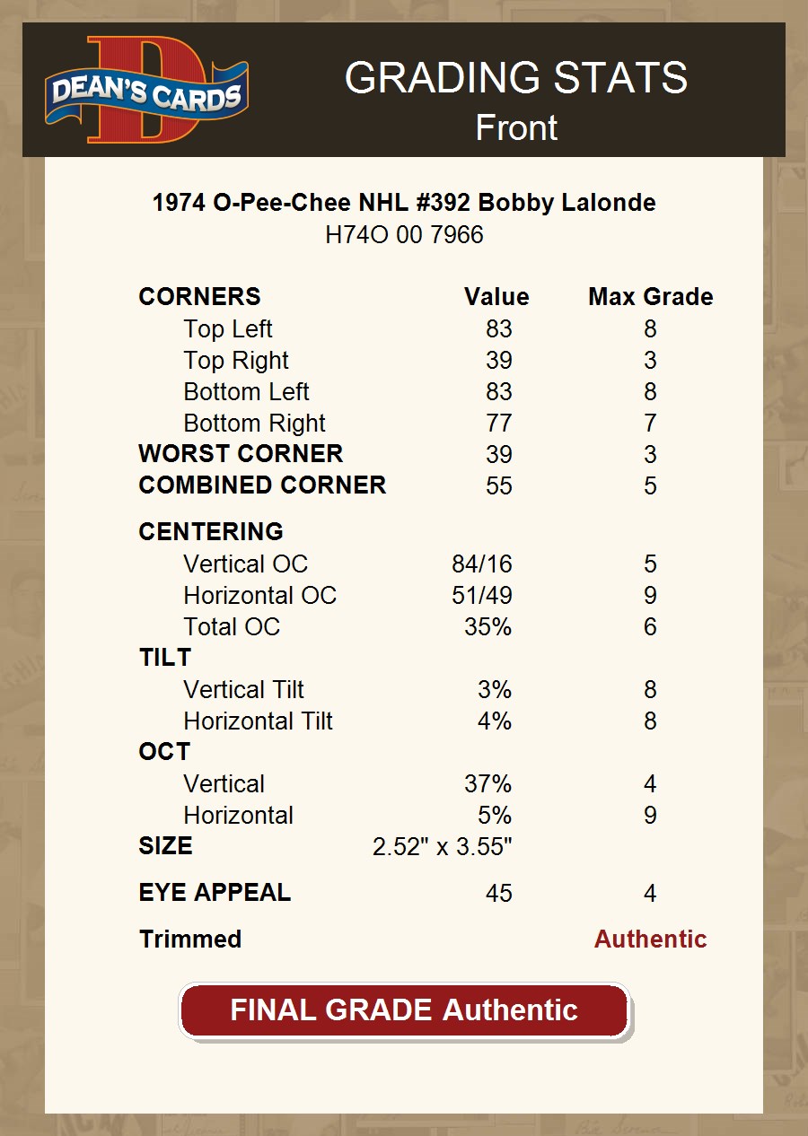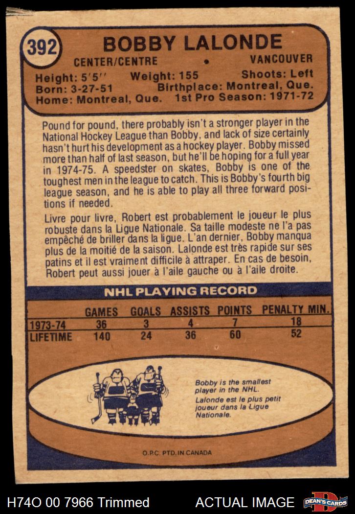 1974 O-Pee-Chee NHL #392 Bobby Lalonde AUTHENTIC