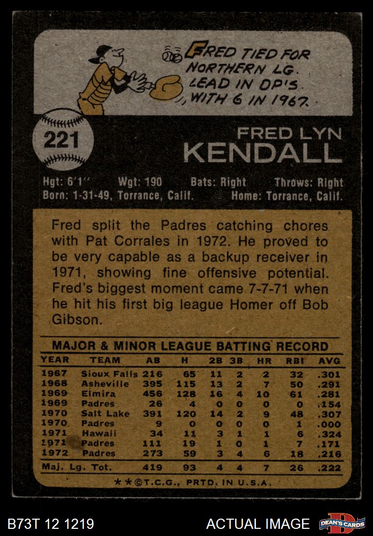 1973 Topps #221 Fred Kendall