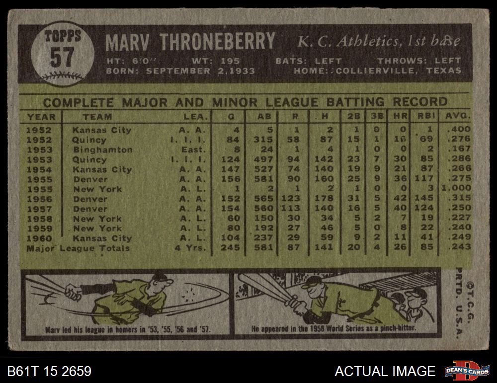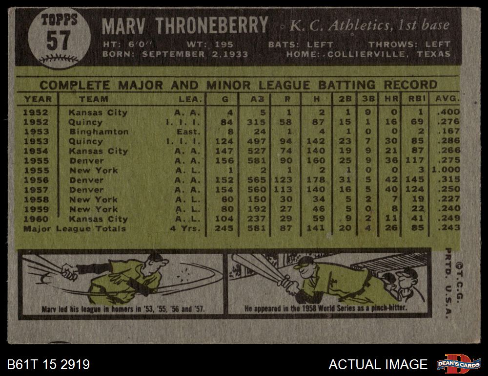 1961 Topps #57 Marv Throneberry