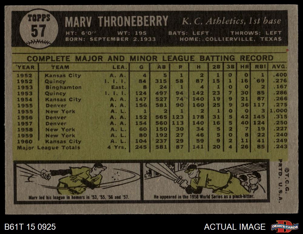 1961 Topps #57 Marv Throneberry 5 - EX