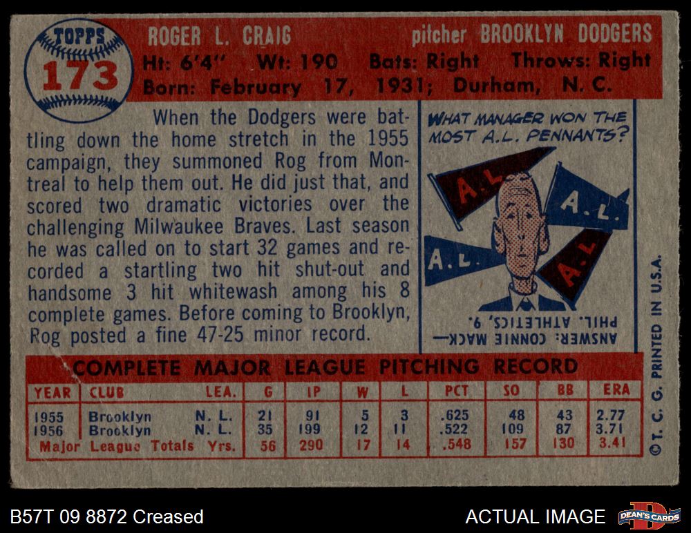 1957 Topps Baseball Cards (5,300 available)1957 Topps Dodgers (311 available)